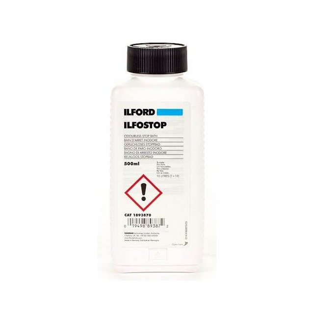 Ilfostop is a low odour citric acid stop bath. After development it is recommend that films and papers are rinsed in an acid stop bath to stop development immediately and neutralise the developer to help maintain the activity of the fixer bath. It helps to maintain the activity and prolong the life of the fixer solution by reducing carry over of excess developer (alkaline) into the fixer bath (acidic).