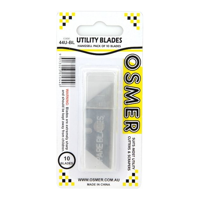 TRIKB10 TRIKB10 OSMER UTILITY TRIMMING KNIFE BLADE PACK OF 10. Hangsell pack of 10 trapezoid blades held in a semi-rigid plastic tube and featuring double-end pointed reversible ground-edge 52 angled blade. In stock Login For Price