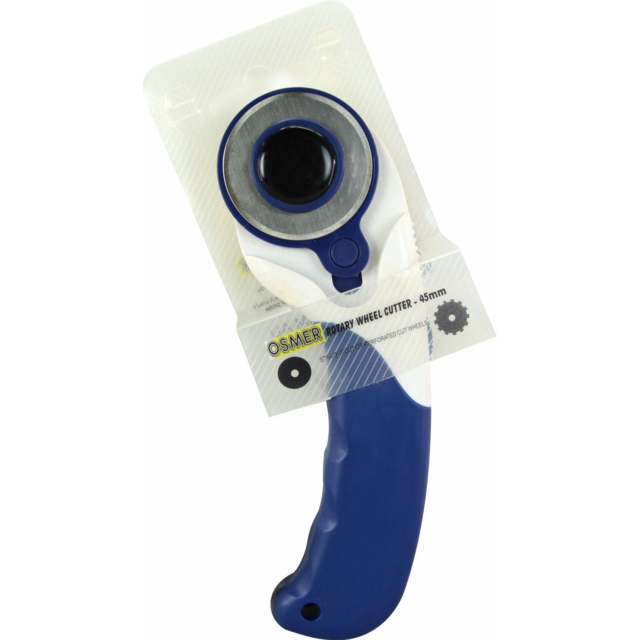 OSMER ROTARY WHEEL CUTTER - 45mm BLADES Cutter comes fitted with a straight blade and safety locking mechanism keeps blade edge covered when not in use. Replacement blades available.Straight cut : ROTBL45S. Perforated edge blade for tear off forms : ROTBL45P