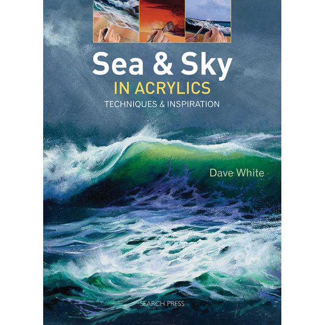 SP10672 SP10672 SEA & SKY IN ACRYLICS. Dave White introduces the simple but effective techniques that he uses to paint stunning, dramatic seascapes with beautiful and realistic skies. He demonstrates spattering, blending backgrounds, painting horizons, finger painting clouds and foam. Clear instructions show how to paint effective reflections and beaches to improve your seascapes. The sky section shows effective techniques for painting all types of cloudand sunsets. Includes three step by step projects show how to paint a beach panorama with a rolling wave, a spectacular sunset over a calm sea and waves crashing on rocks. In stock Login For Price