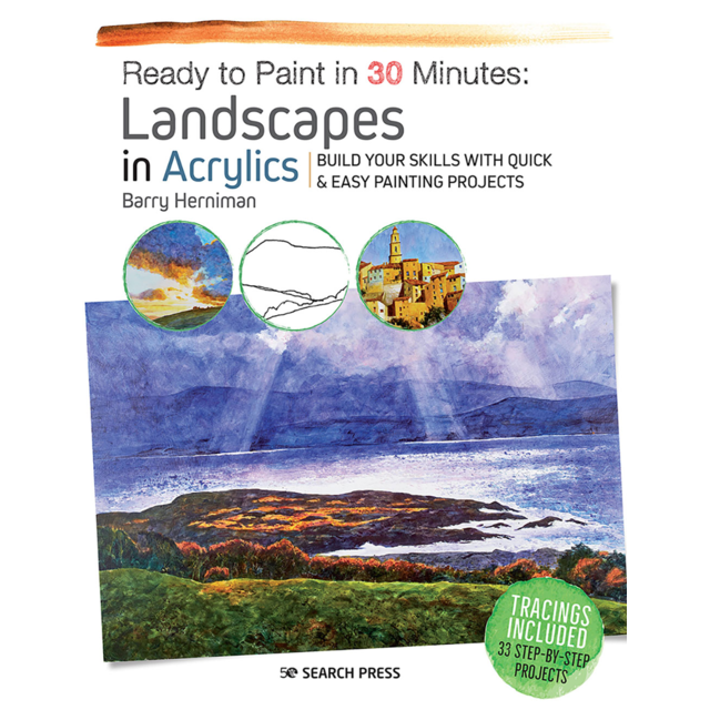 SP16766 SP16766 READY TO PAINT-LANDSCAPES IN ACRYLICS. This beginner guide to painting the landscape in acrylics is ideal if you want to learn to paint but are short on time. Each of the 33 quick-and-easy studies takes no more than 30 minutes and will teach you how to apply a crucial technique to your work or paint a particular aspect of the natural landscape. The book also contains 3 larger paintings that demonstrate how to combine the elements learned into vibrant and inspiring landscapes. Build up your skills in easy chunks learning about form and composition colour mixing working with acrylics and capturing the drama of the natural world. The exercises are all worked at postcard size ideal for a 6 x 4 inch (A6) watercolour pad. All the required tracings are included. In stock Login For Price