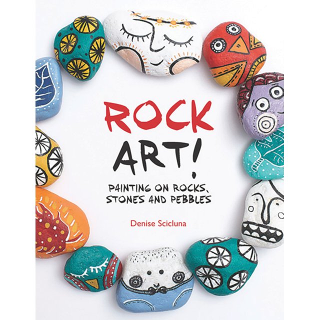 SP11839 SP11839 ROCK ART. Denise Scicluna shows techniques for painting eccentric art on rocks! You can create Scottish terriers, goldfish, monsters, houses, hearts, happy faces, geometrics, abstracts, horses, bugs, beetles, plaids, daisies, apples, bananas, moons, ferns, fairies, mushrooms, stripes, stars, Autumn leaves, undersea creatures, feathers, cats, cacti, skyscrapers, sad faces, starships, alphabet letters, ladybirds, mandalas, hot-air balloons, birds, bees, butterflies, pumpkins, poodles, peapods, shoes, ships...the list goes on! Plenty of crafty tips, techniques and advice In stock Login For Price