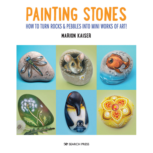 SP20026 SP20026 PAINTING STONES BOOK by Marion Kaiser. Accomplished artist Marion Kaiser brings you this fun, beautiful and quirky guide to creating cute stone art. Discover 20 fun designs in a variety of styles. Projects include animals such as a panda, elephant and lizard, insects such as a ladybird and dragonfly, and birds such as a swan and a penguin. There are other lovely things to create too, such as a cottage, a mandala and a feather. With clear step-by-step instructions accompanying each design, and beautiful photographs to inspire you, Painting Stones will soon have you on your way to creating your own rock art collection. Available soon Login For Price