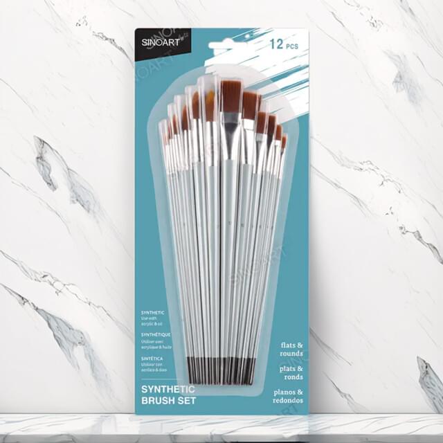 SINOART LONG HANDLE NYLON FLAT/ROUND BRUSH SET OF 12.