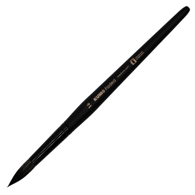 KUM FADED FRENCH ROUND BRUSH SIZE 6. The French Round allows for seamless blending, ideal for soft gradients and flowing effects in watercolour techniques. The fine tip also enables controlled application in detailed areas. |