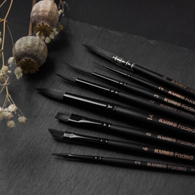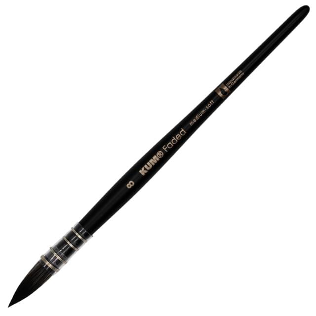 KUM FADED FRENCH ROUND BRUSH SIZE 8. The French Round allows for seamless blending, ideal for soft gradients and flowing effects in watercolour techniques. The fine tip also enables controlled application in detailed areas. |
