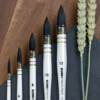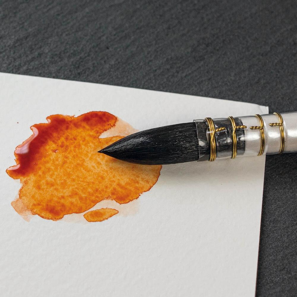 The French Aqua brush offers artists a wide range of new possibilities – from creating large scaling work and colour transitions to soft watercolour techniques. These brushes are made using a blend of fibres with varying diameters in a perfect mix, which translates to an extremely high storage capacity, superior to the traditional petit gris brushes made out of natural hair. The thin synthetic fibres imbue an extremely high elasticity with a high memory making it ideal for soft techniques, while also allowing the artist to also create the finest details. These features make the French Aqua range perfect for Watercolour Sketching. The white pearled handle gives this brush an elegant look.