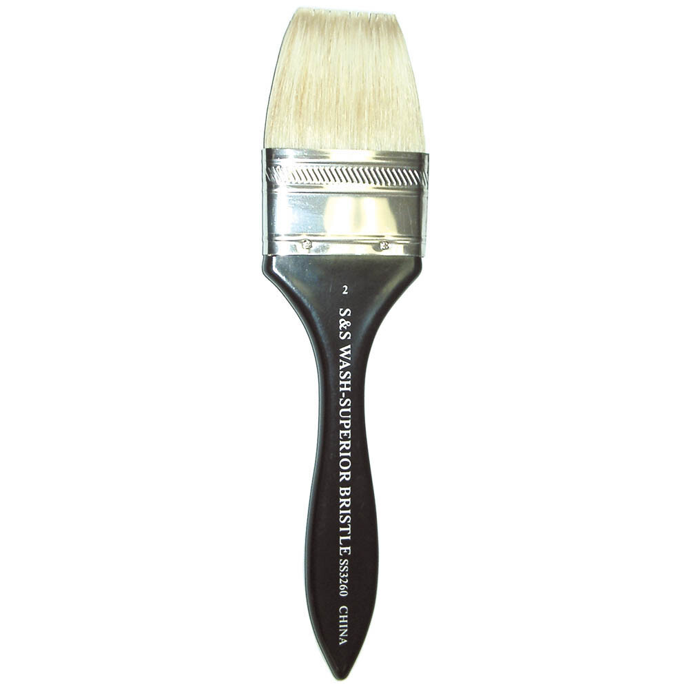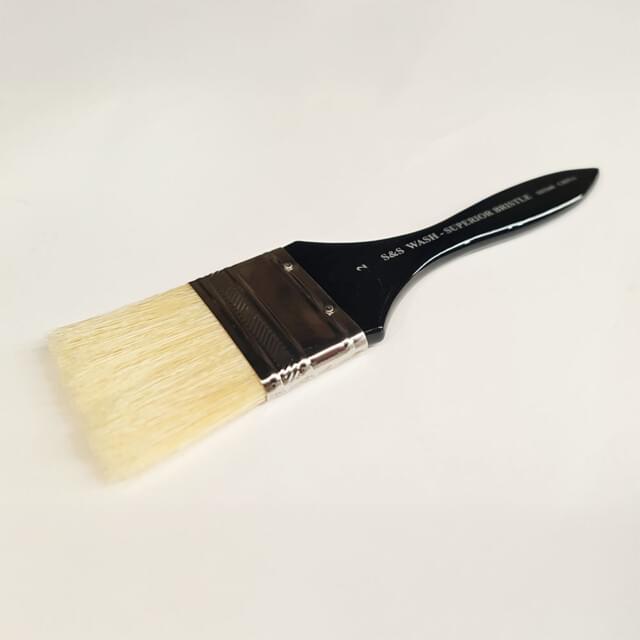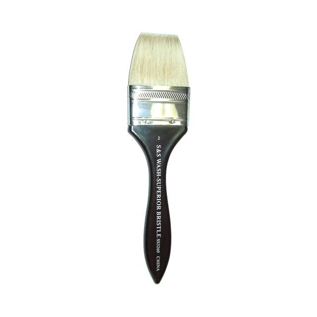 A Premium quality brush, featuring Pure Chungking white bristle which offers excellent control, resilient strength and long life. The bristles are fine and resist breaking or pulling out which makes them ideal for the application of free flowing liquids like watercolour and other washes as well as the finer artists varnishes. They are not an inferior priming/ gesso brush. Stainless steel ferrule on short black wooden handle.