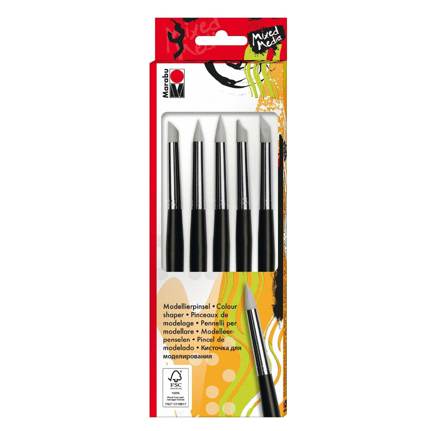 MARABU COLOUR SHAPERS SET OF 5. Colour Shaper set of 5 featuring silicone tips that are round, flat and angled. Suitable for mixing and spreading paints, modelling pastes, texture pastes and gels. The silicone tips dry quickly and are easy wash up. Handles are FSC certified wood. |