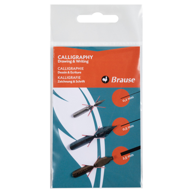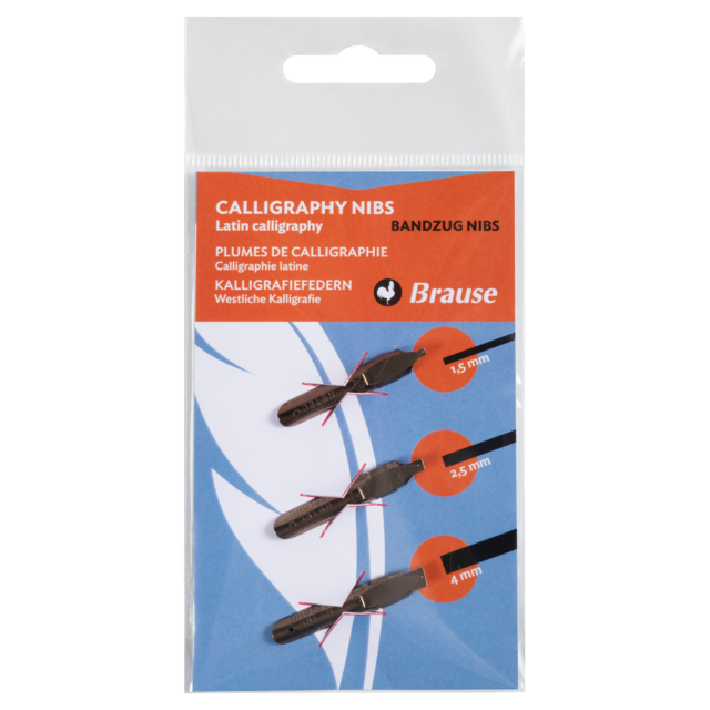 BRAUSE 3 ASSORTED CALLIGRAPHY NIBS SET #1. Contains one each of the Bandzug 1.5, 2.5 and 4.0mm nibs |