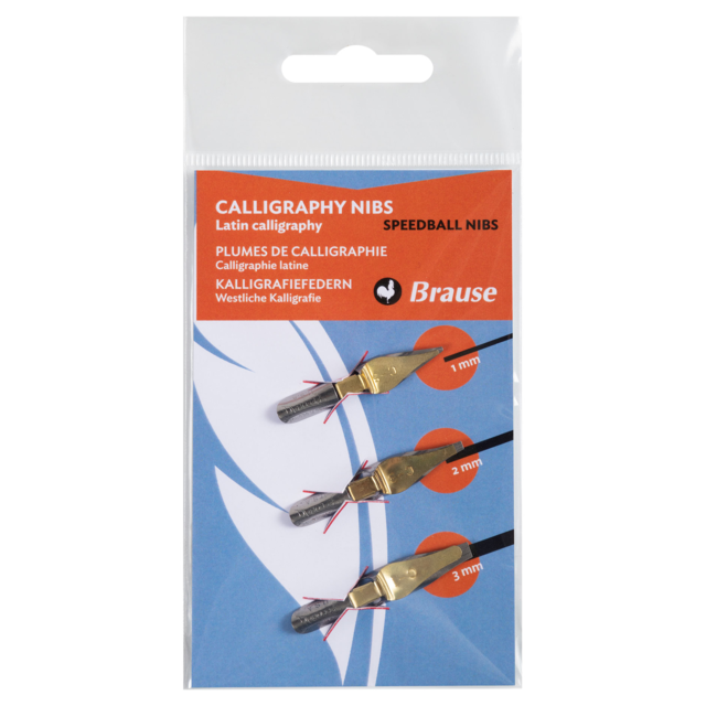 *BRAUSE 3 ASSORTED CALLIGRAPHY NIBS CARD SET #2. Contains one each of the Speedball 1.0, 2.0 and 3.0mm nibs |