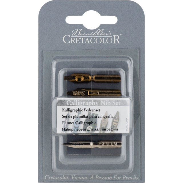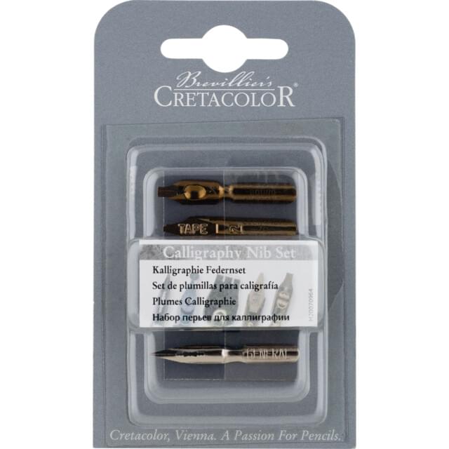 CR43110 CR43110 CRETACOLOR CALLIGRAPHY NIBS PACK 5. One each of a drawing nib, poster nib, ornamental nib, ornamental pen and roundhand nib. In stock Login For Price