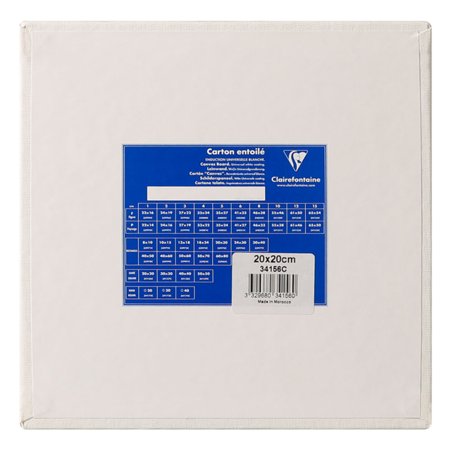 CLAIREFONTAINE WHITE 3mm CANVAS BOARD 20 x 20cm. |