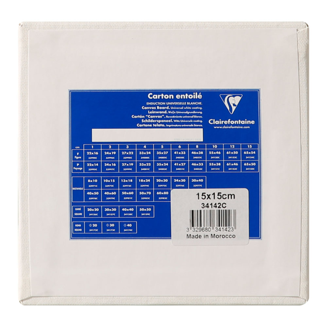 CLAIREFONTAINE WHITE 3mm CANVAS BOARD 15 x 15cm. |