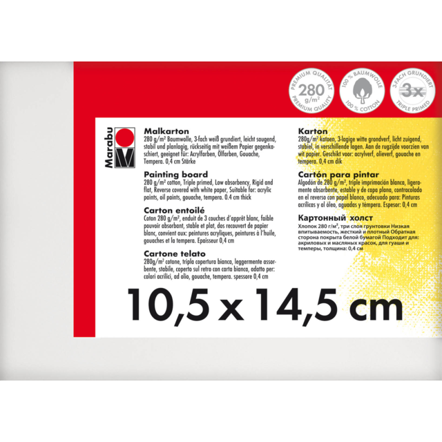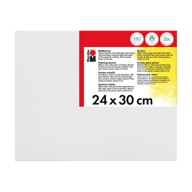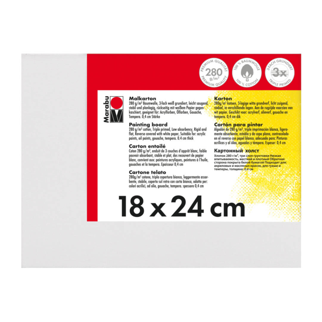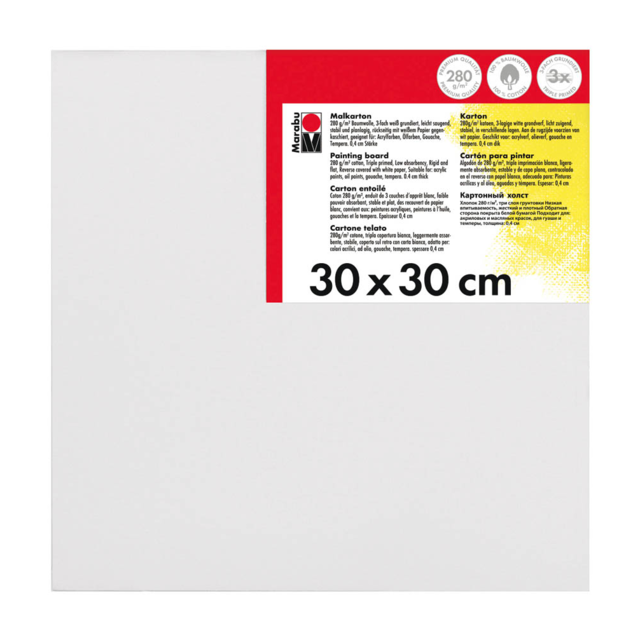 Sturdy canvas painting boards covered with 280gsm, white, triple primed cotton canvas. Suitable for acrylics, oil, gouache and tempera colours.
