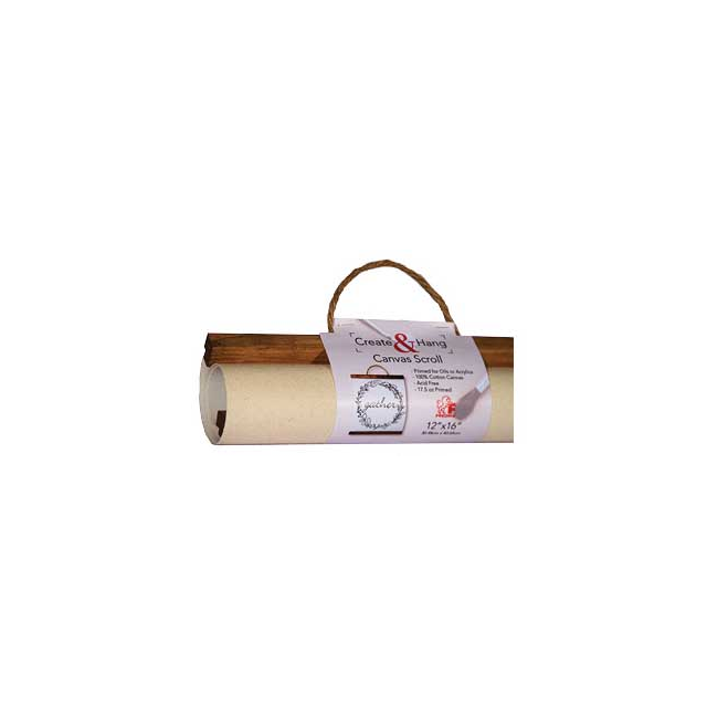 Scroll Canvas - perfect for personalized wall art, paintings, home decor, crafts, and so much more. The scrolls are made with heavyweight, 100% cotton canvas and primed with professional-grade acrylic gesso (17.5oz primed weight). The hardboard backing attached to the canvas eliminates wrinkling and curling.They're ready to paint with acrylic or oil colours - no preparation required. The canvas surface is also great for spray paint, paint markers, permanent markers, and vinyl letters. Canvas Scrolls feature wood bars at the top and bottom and jute strings for easy hanging.