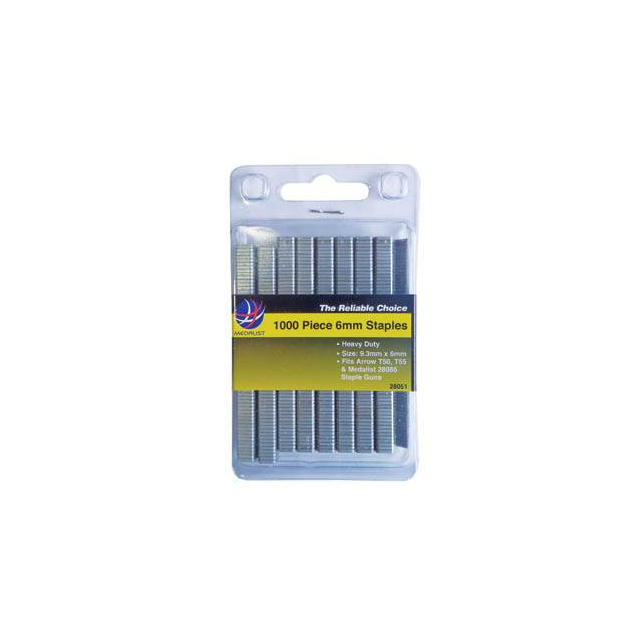 STAP28051 STAP28051 HEAVY DUTY TACKER STAPLE 6mm Pkt 1000. Staples to suit Heavy duty Trigger tacker. In stock Login For Price