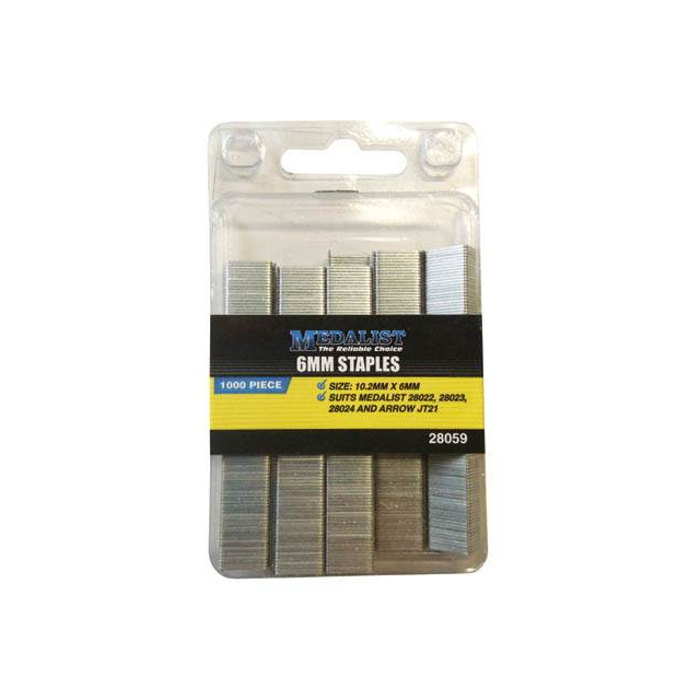 STAP28059 STAP28059 TRIGGER TACKER STAPLES 6mm Box 1000. Replacement staples wth 6mm leg to suit medium duty trigger tacker. In stock Login For Price