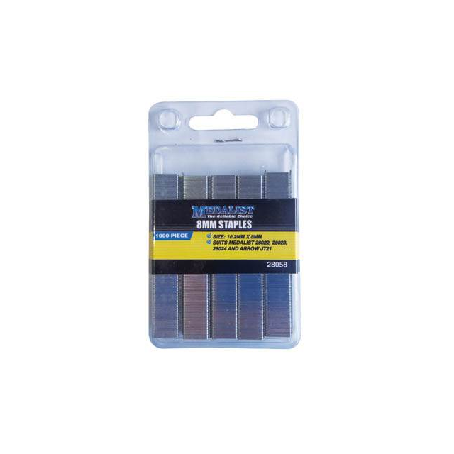 STAP28058 STAP28058 TRIGGER TACKER STAPLES 8mm Box 1000. Replacement staples wth 8mm leg to suit medium duty trigger tacker. In stock Login For Price