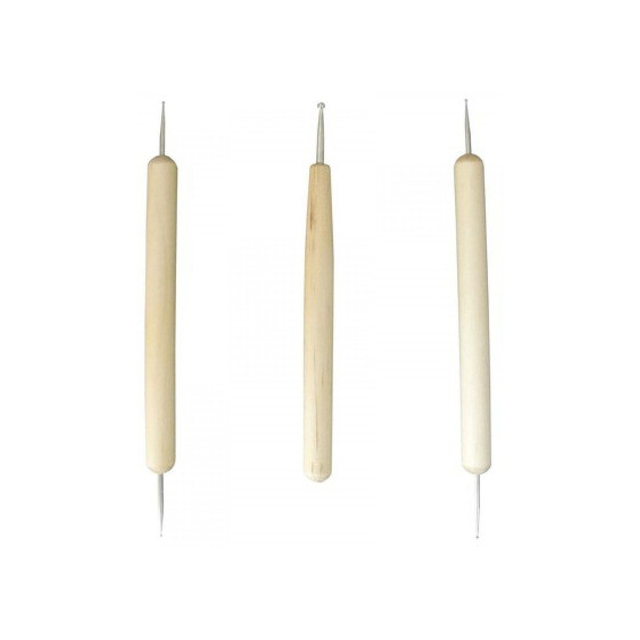 SIO-2 WOODEN CLAY MODELLING TOOL SET OF 3. A set of 3, 15cm long clay modelling tools on a hang/sell blister card. |