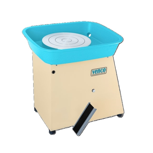 VENCO DIRECT DRIVE GLIDE POTTERY WHEEL.This pottery wheel is an affordable step into a Direct Drive wheel. It features a r: Direct drive 400Watt permanent magnet, brushless design, maintenance free motor with no belts or pulleys - nothing to tension and no belt thump. Also includes acorrosion resistant aluminium tray and wheel head, zinc plated and powder coated steel frame and body for extreme corrosion resistanceErgonomic foot pedal with easy adjustment. Intelligent microprocessor based control system for smooth, precise controlEasy clean touch pad control on side of wheel - forward and reverse button Average speed range: Infinitely variable 0 - 260rpm clockwise/counter-clockwise, switch controlled, 330mm (13inch) machined marine grade alloy wheel-head. Dimension: (L)685mm x (W)508mm x (H)558mm - Weight: 25kg |