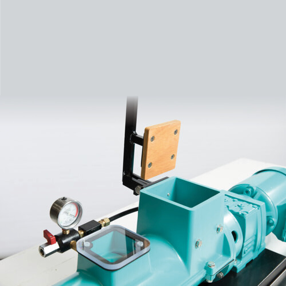 #VENCO SUPER TWIN DE-AIRING PUG MILL/CLAY EXTRUDER. Clay is fed to the pug mill via a unique bucket feeder eliminating the effort needed to pull a lever as with conventional pug mills. A novel twin auger mixing chamber, containing two counter rotating augers, quickly draws the clay away from the feed area and thoroughly blends it within the large volume, stainless steel, mixing chamber. The feeder completely removes the risk of injury caused by loading clay into the hopper, making the SUPER twin ideal for classroom as well as professional operation. This system allows the pug mill to be left operating while the next piece of clay is being loaded. This removes the need for safety switches and other methods used by competing systems which cut power to the motor when the pug mill is being loaded this crude approach creates unnecessary wear and strain on the drive train resulting in a reduced service life of the motor and gearbox. |
