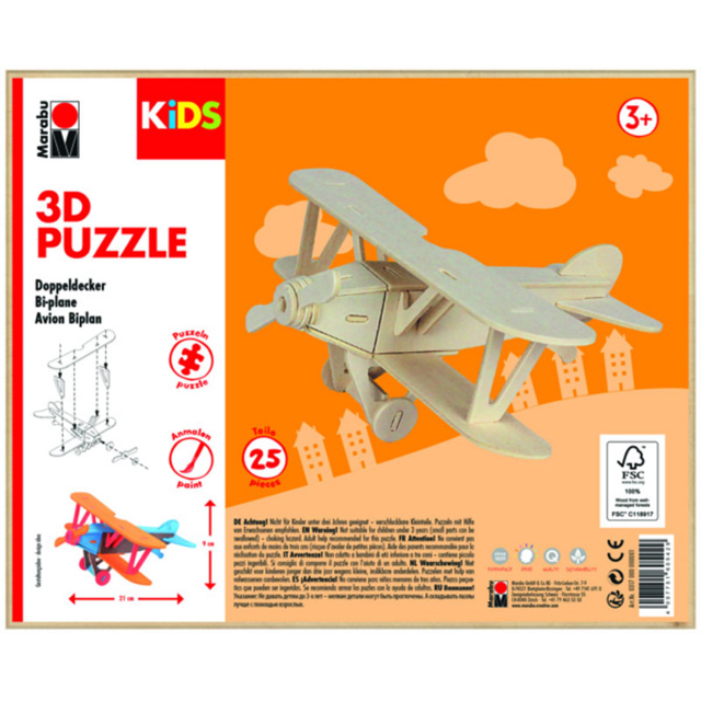 MARABU WOODEN 3D PUZZLE- BIPLANE |