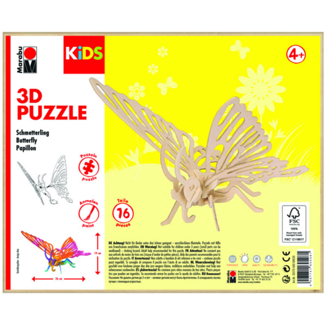 *MARABU WOODEN 3D PUZZLE - BUTTERFLY |