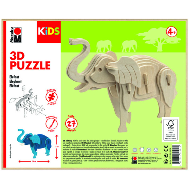 MARABU WOODEN 3D PUZZLE - ELEPHANT |
