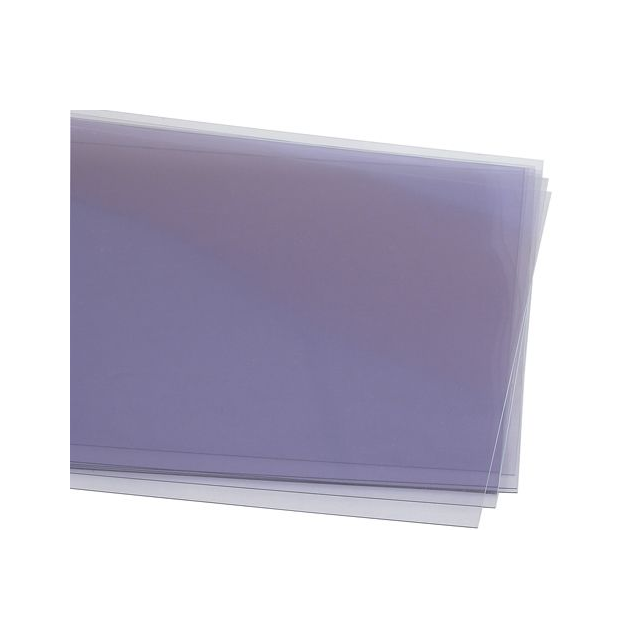 Crystal clear acetate sheets for craft work. These sturdy plastic sheets are ideal for covering fabrics for protection and can be used to make ink and paint backgrounds for stamping and cardmaking.