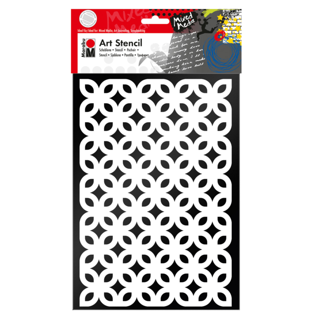 Inspirational stencils for paper, canvas, wood, fabric and more. Ideal for designing backgrounds for mixed media, art journalling, scrapbooking or card making. PVC free, laser cut, hard wearing and durable. Easy to clean, re-useable and reversible.