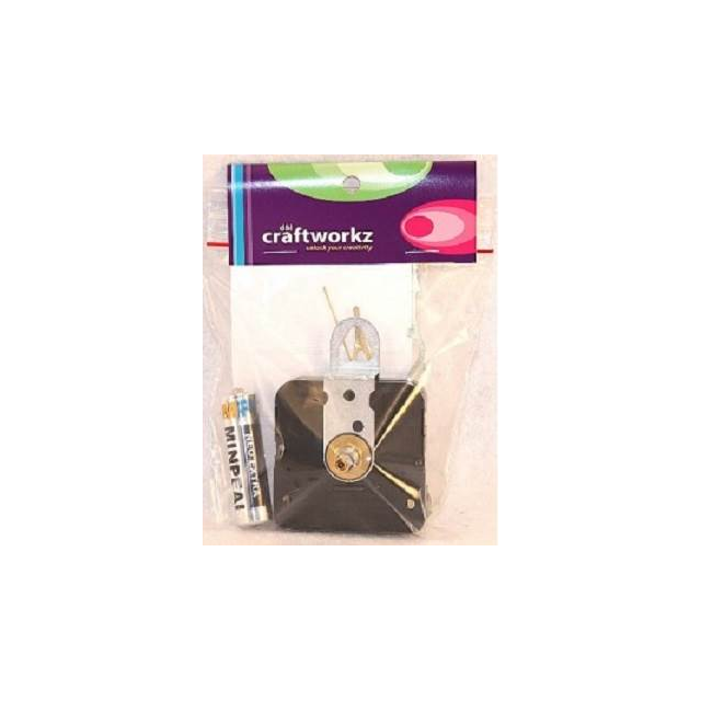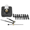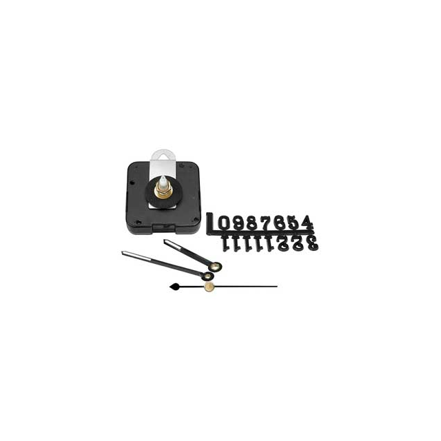 SMALL 15cm CLOCK MOVEMENT/HANDS/NUMBERS KIT. A complete clock movement kit to a 15cm minimum diameter clockface. Supplied with a 15mm long output shaft for clock faces up to 10mm thick plus a set of modern straight rounded edge hands together with a set of black, 15mm Arabic numerals. Kit includes optional hanger bracket and requires the addition of one AA size battery (not included) to complete the clock. Where a larger 25cm diameter clockface is required, add clock hands set CLOH3BK. |