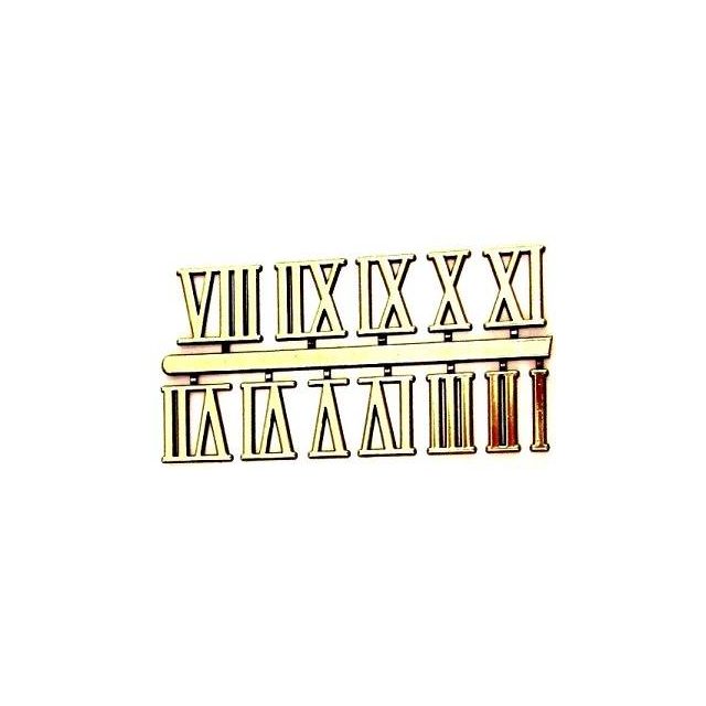 *ROMAN CLOCK NUMBERS GILT - 16mm (5/8inch). Quality, elegant classic Roman style, gold coloured Clock Numbers - for attachment to a clock face when using a standard 15mm or 17mm long shaft clock movement kit. |