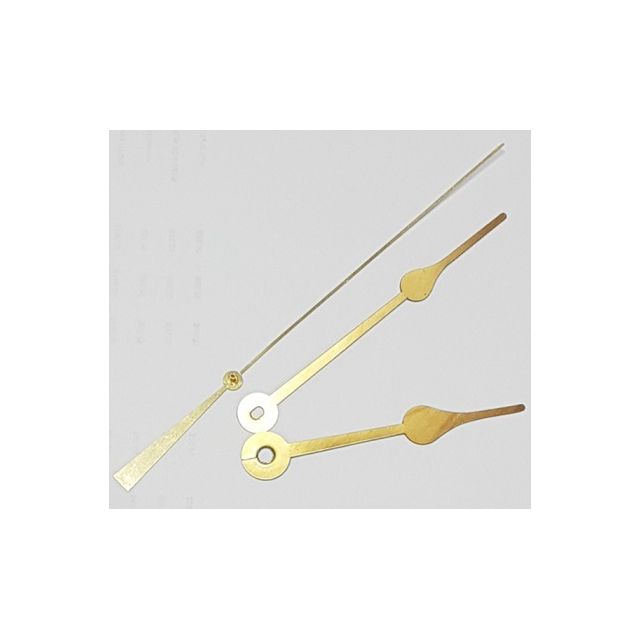 GILT CLOCK HANDS SET TO SUIT 17mm SHAFT KIT. An alternative set of three gilt finish clock hands, to replace the standard black hands set supplied with the the 17mm shaft movement kit, for a more elegant clockface when combined with the gilt Roman numerals set. |