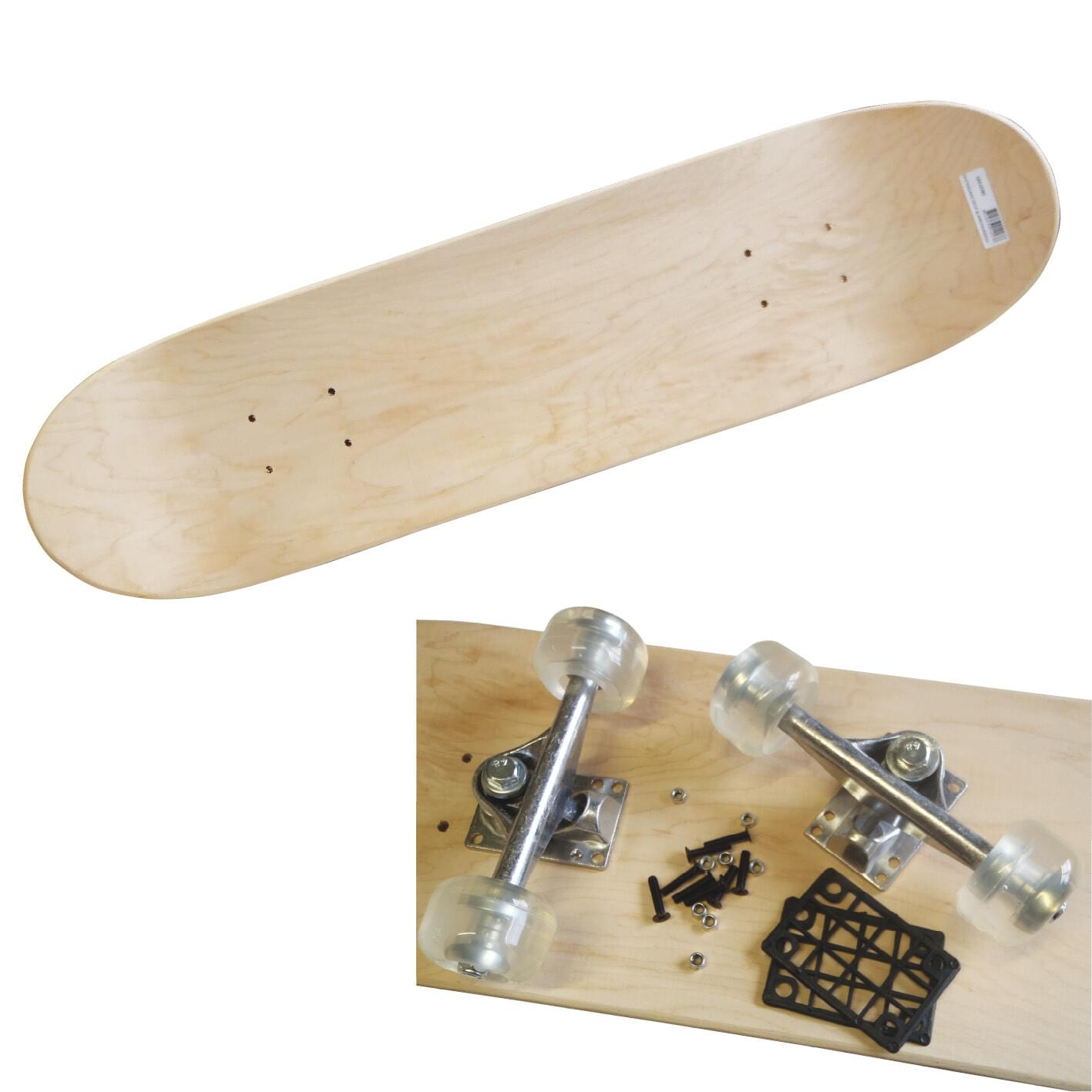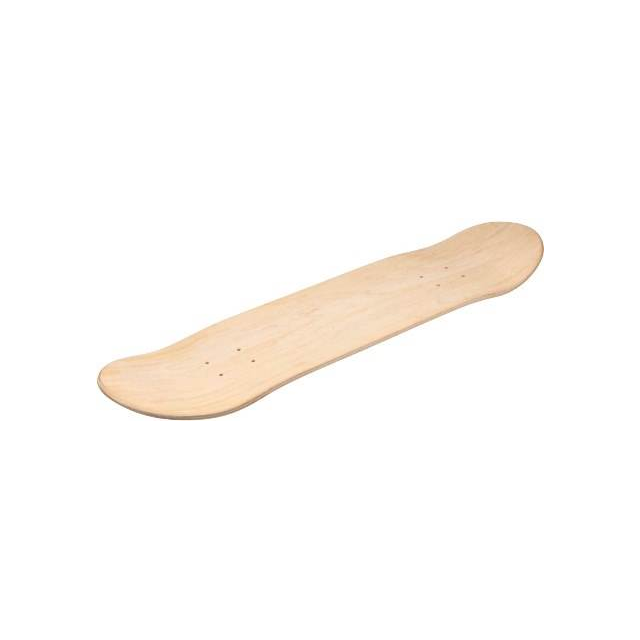 RIDEABLE SKATEBOARD DECK- 7 PLY 200x800 mm. The skateboard standard 200 x 800mm blanks are made from 100% maple plywood for maximum stength and flexibility.The deck comes pre-drilled for the addition of trucks. When the board is viewed side-on you will see that it is a 7 ply laminated board for added strength. Each board weighs approximately 1.2 kg. The bare timber surface is pre-sanded ready for the student's individual artwork to be applied directly onto the board. Both sides of the skateboard deck feature the same smooth surface and can be protected with the addition of the translucent or black, self-adhesive deck tape. |