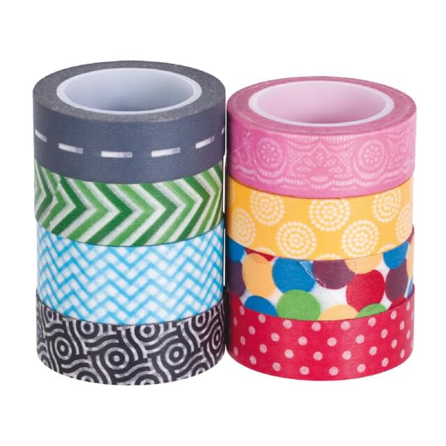 Washi tapes in an assorted styles and widths. These self-adhesive patterned paper tapes are great for crafting projects, card making, collage and displays.