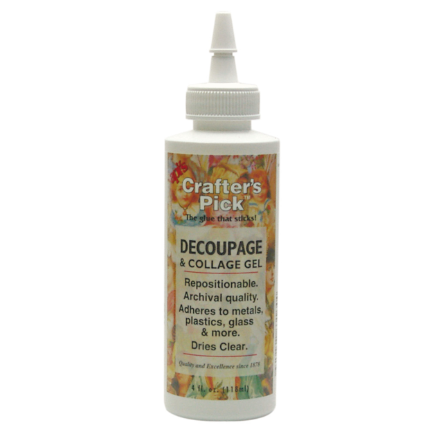 Découpage is the art of decorating an object by gluing colored paper cutouts onto it in combination with special paint effects, gold leaf and other decorative elements. Commonly, an object like a small box or an item of furniture is covered by cutouts from magazines or from purpose-manufactured papers. This extensive range of mediums, varnishes and glues will enhance all your Découpage creations.