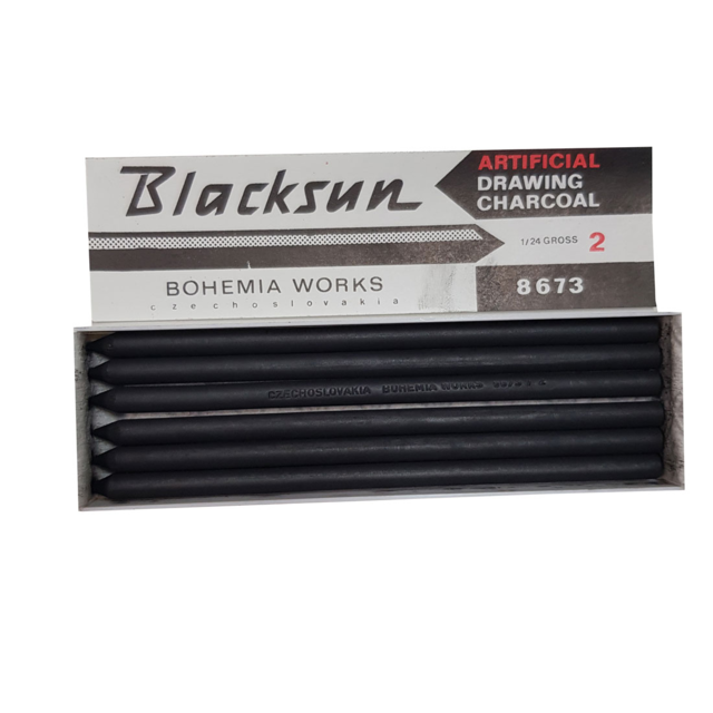 *COMPRESSED 5.6mm CHARCOAL STICKS 2B Box 6. Koh-i-nooe Black Sun compressed charcoal sticks 2B grade-120mm x 5.6mm diameter box of 6 sticks. Originally designed for use with 5.6mm clutch pencil.but usefuleas a fine drawing tool.