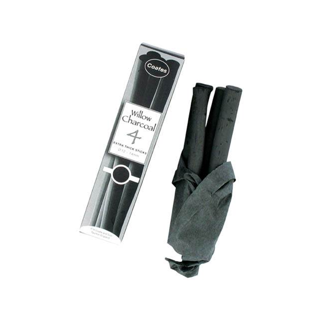 COATES ARTISTS WILLOW CHARCOAL 3-4mm Diameter Box 10. The soft black charcoal produced from these best quality willows is particularly well suited to satisfy the whole range of artistic needs.Full length 135mm long sticks. |