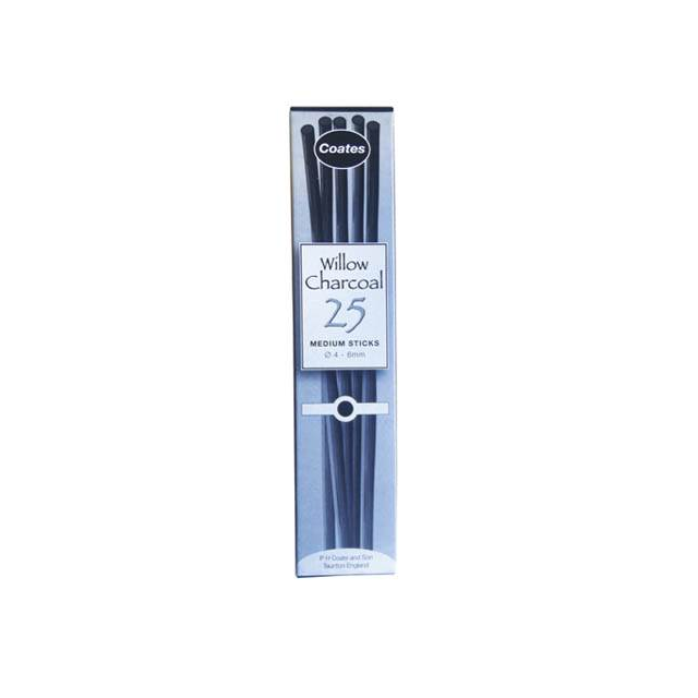 COATES ARTISTS WILLOW CHARCOAL 3-12mm DIAMETER Box 30. The soft black charcoal produced from these best quality willows is particularly well suited to satisfy the whole range of artistic needs. Budget boxes containing sticks in assorted lengths and diametres. Ideal for classroom use. |