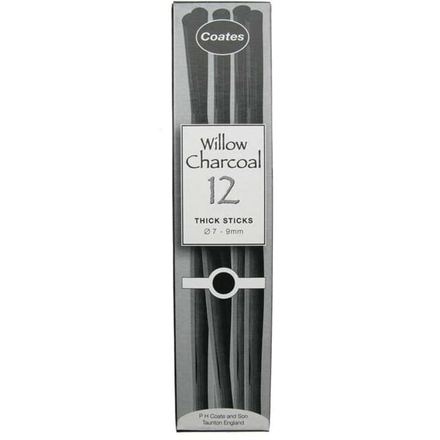 COATES ARTISTS WILLOW CHARCOAL 7-9mm Diameter Box 3. The soft black charcoal produced from these best quality willows is particularly well suited to satisfy the whole range of artistic needs.Full length 135mm long sticks. |