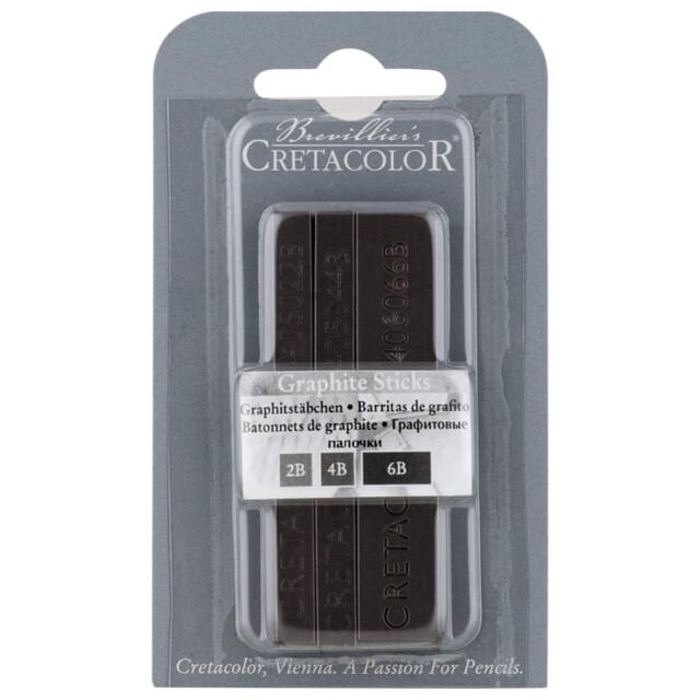 Cretacolor Graphite Blocks are a rectangular section, 7 x 14 x 72mm solid graphite artists block. Because of their rectangular "block" shape, they can lay down smooth, intense shades, from very fine lines (using the edges) to strokes of 6mm, 13mm and even 72mm wide in one, fast free movement. Ideal for portrait and landscape sketching. The solid graphite stick with no wood casing lasts longer than pencil-style versions and represents excellent value.