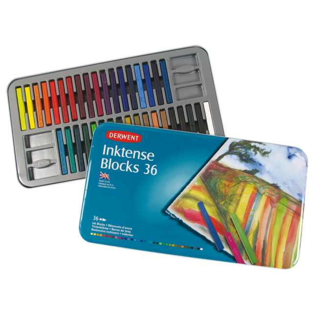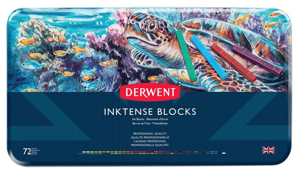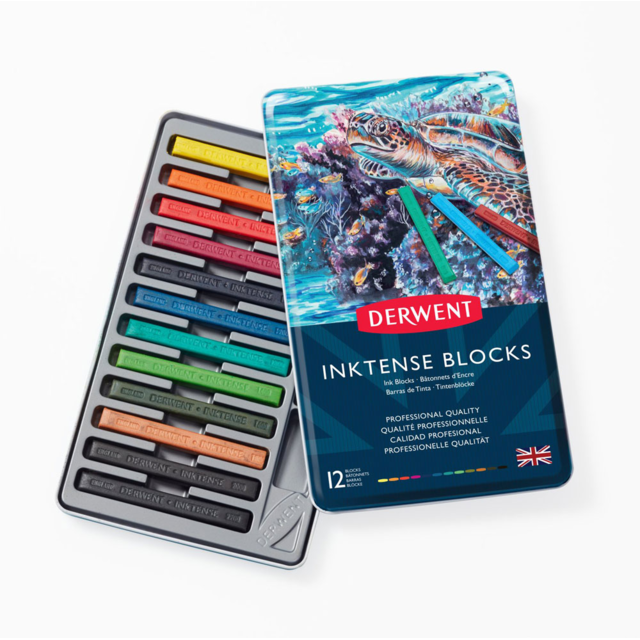 D2300442 D2300442 DERWENT INKTENSE BLOCKS TIN 12 ASSORTED.Contains 1 block in each of the following colours Sun Yellow, Tangerine, Poppy Red, Fuschia, Deep Indigo, Sea Blue, Teal Green, Apple Green, Leaf Green, Baked Earth, Bark, Black In stock Login For Price