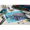 Only a little water is needed to make the colour go a long way and the chunky 8mm square block makes it perfect to hold. The large 75mm long blocks allow large areas of colour to be laid down very quickly, encouraging a loose style while producing free and expressive marks.