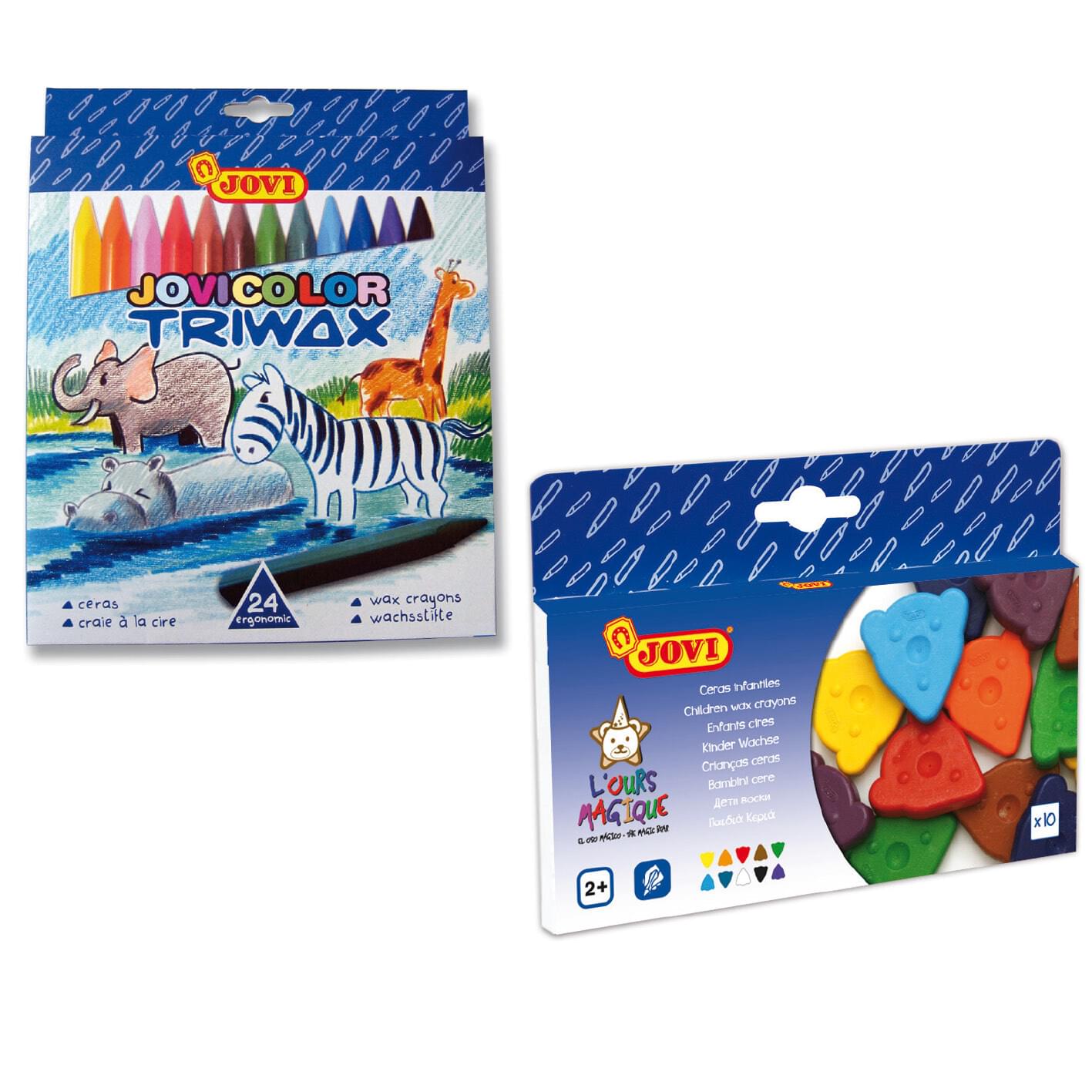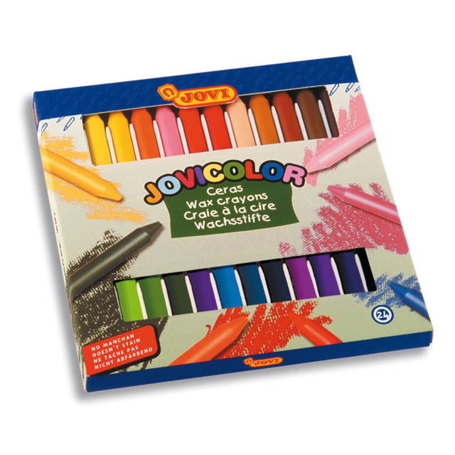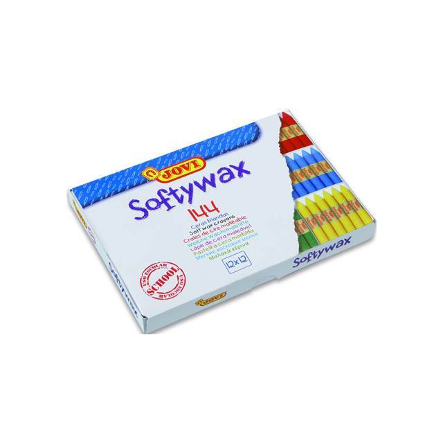 *JOVI SOFTYWAX CRAYONS CLASSPACK OF 144. Round wax crayons with very good coverage. They are odour free, easy to paint with and have a very high performance due to the fact that the whole crayon is solid colour. Classpack contains 12 each of 12 popular colours |
