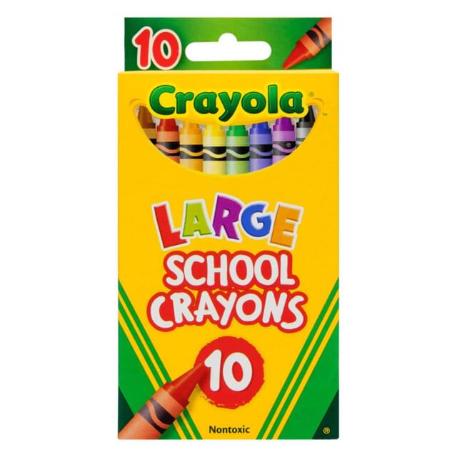 CRAYOLA LARGE SCHOOL CRAYONS PACK of 10. Perfect for smaller hands in learning grip and control. The rich colours blend easily and do not smudge. The crayons are paper-wrapped and will not bend from the heat of a users hand. |