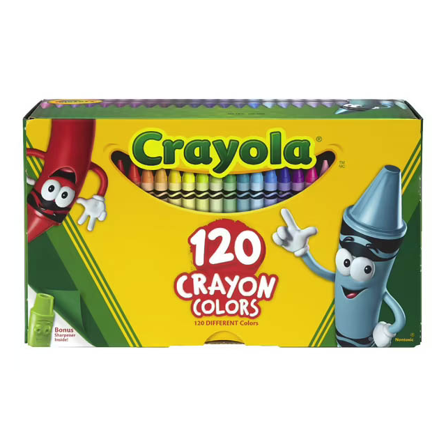 CRAYOLA REGULAR CRAYON PACK OF 24 ASSORTED COLOURS. Colours included are: green, blue, red, yellow, black, white, orange, brown, violet (purple), blue violet, blue green, carnation pink, red orange, red violet, yellow green, yellow orange, gray, gree, yellow, dandelion, apricot, cerulean blue, indigo, scarlet, violet red. |