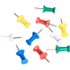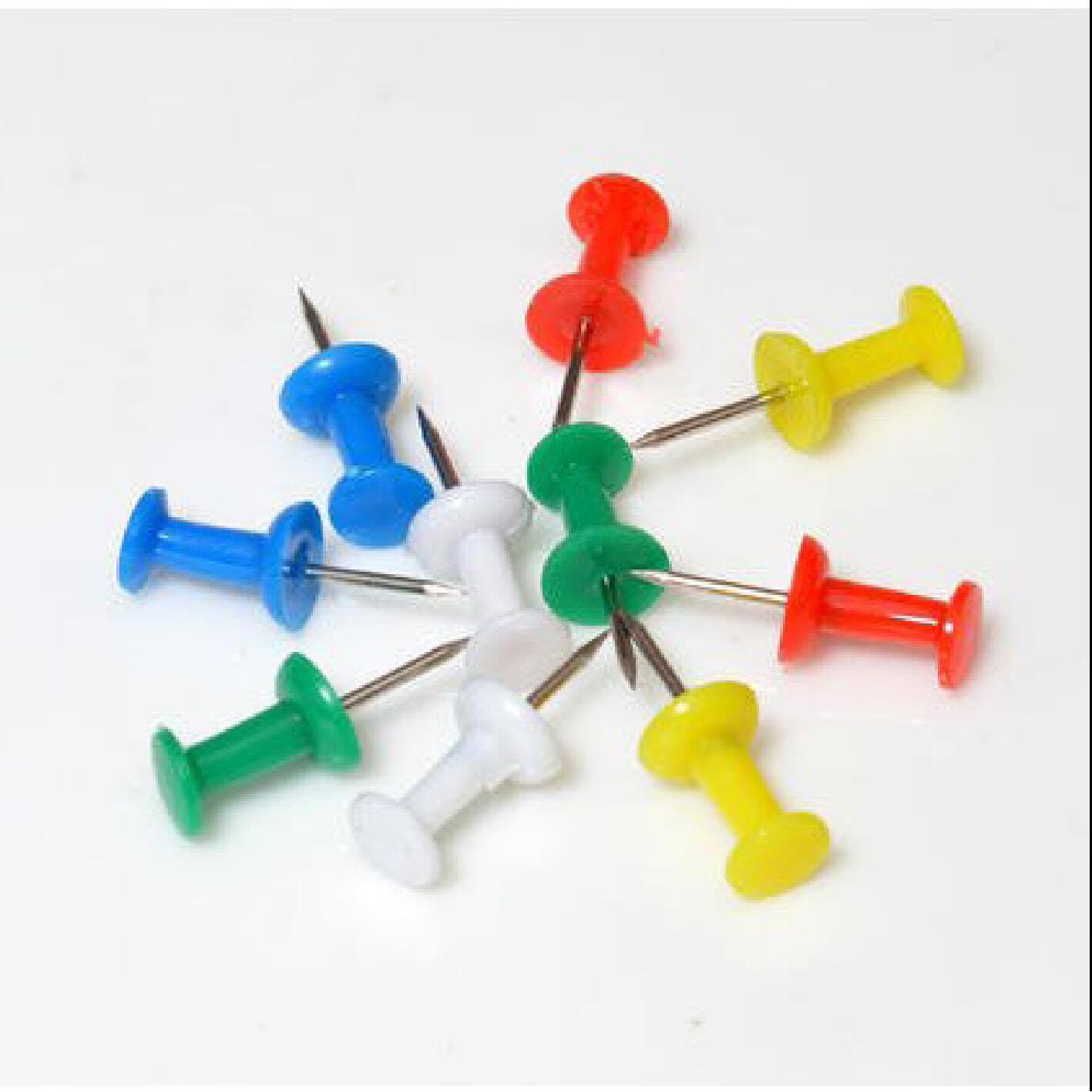 ARTWORK PUSH PINS ASSORTED BOX 30. Easier to use than drawing pins with a large round plastic head in bright colours and hardened steel points. Plastic box of 30 in assorted colours.