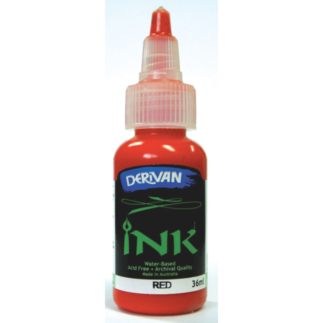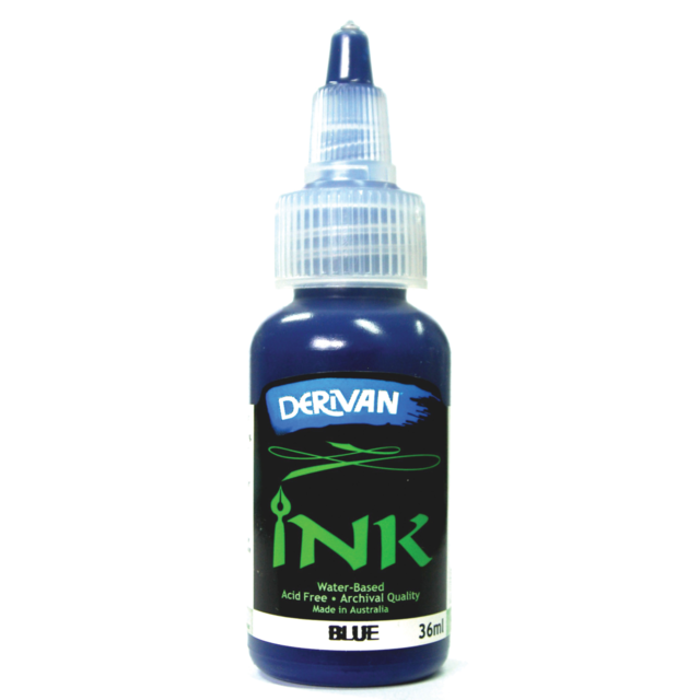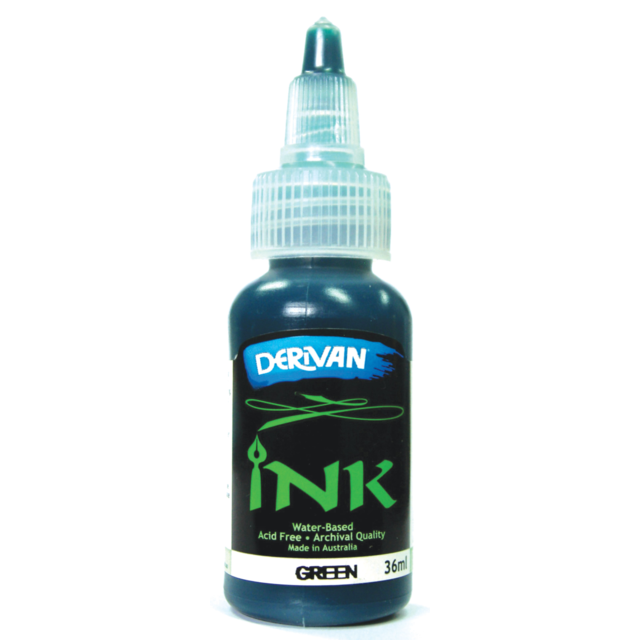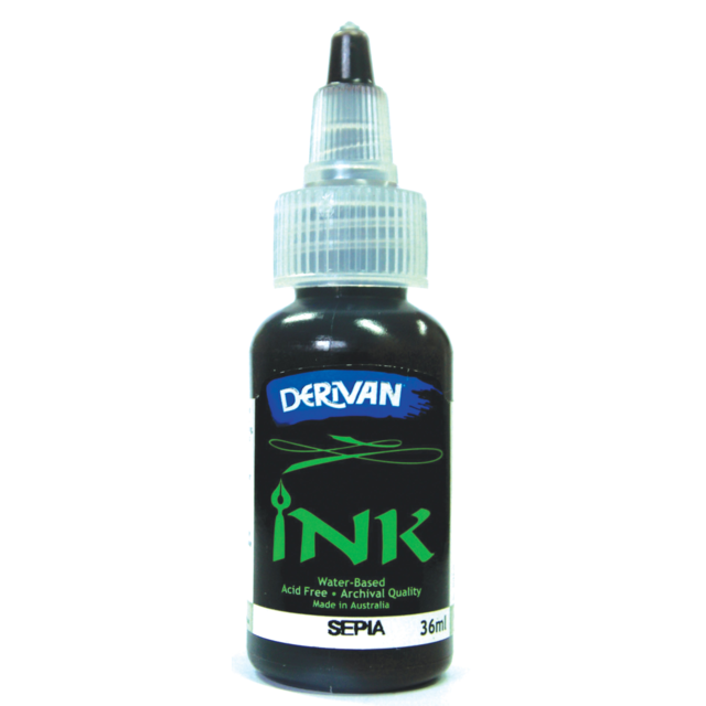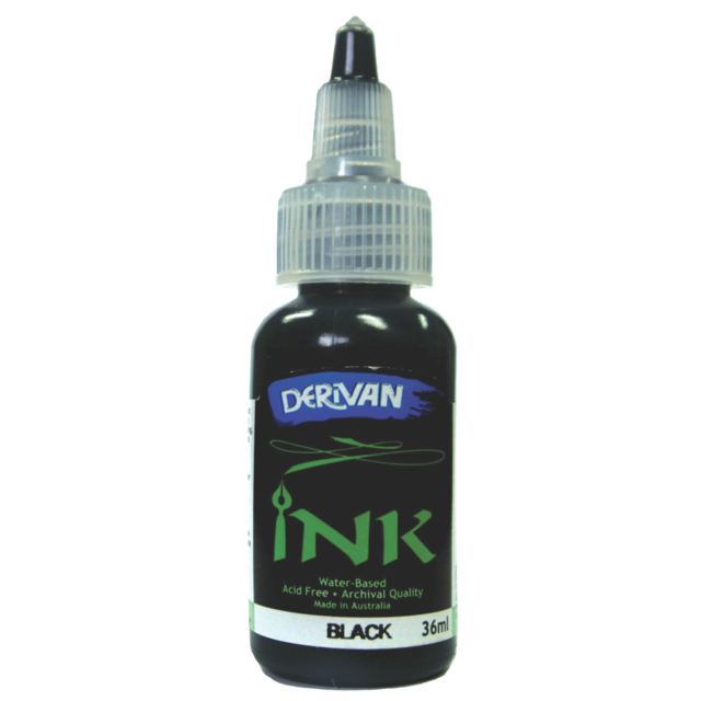 DERIVAN PIGMENTED ACRYLIC ARTISTS INK 36ml - BLACK. Derivan Acrylic Inks are artist quality inks that are highly pigmented, water-resistant, lightfast and non-clogging. Fully intermixable, these acrylic inks can be applied with brush, technical drawing pen, calligraphy nibs and airbrush to paper, board, wood and fabric. |