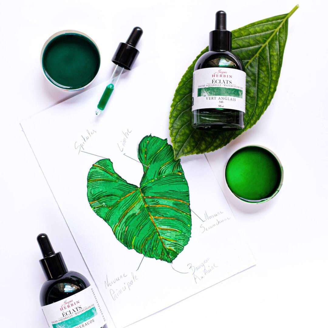JACQUES HERBIN ECLATS WATERCOLOUR INK 50ml EMERALD GREEN |